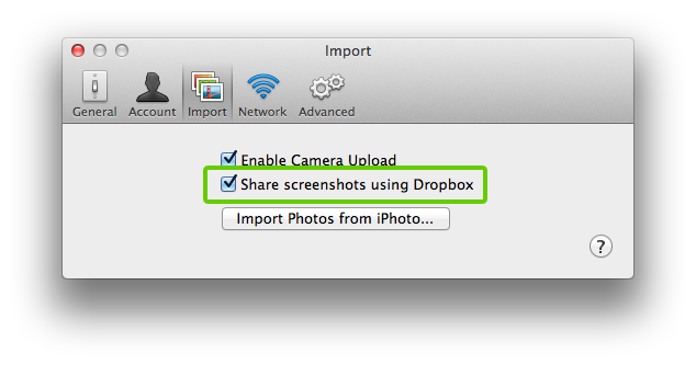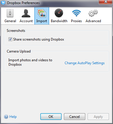 - Check or uncheck Share screenshots using Dropbox.