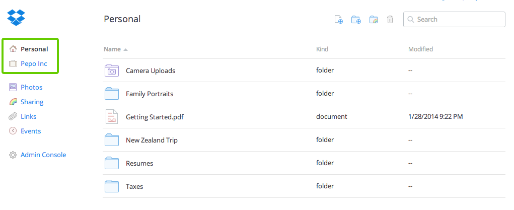 Personal Dropbox and work Dropbox on the website