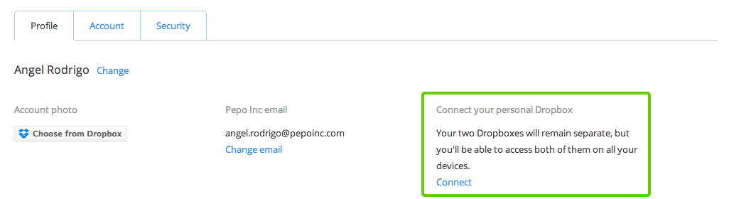 If you’re a Dropbox for Business user, you can have both a personal Dropbox and a work Dropbox on any computer or mobile device, as well as on the web. You’ll first need to access your account settings to connect the two Dropboxes.
