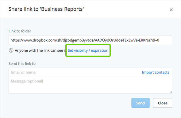 Once you’ve saved your settings, you can copy and paste the link to an email or send it directly to your collaborators through Dropbox.