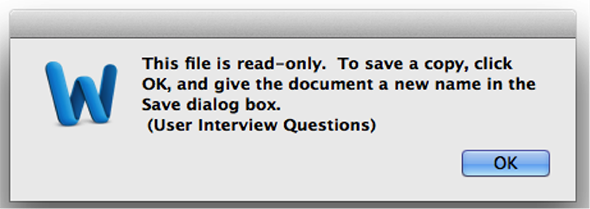If someone with view-only permissions in a shared folder tries to edit and save a file, add a new file, or delete a file, they’ll receive an error message like the examples below.