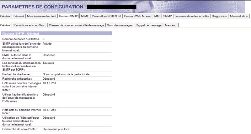serveur domino 8.0.2 + tâche smtp activé (2 serveurs domino en cluster)